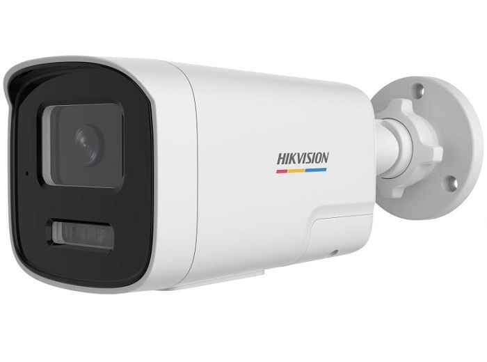 Camera IP bullet ColorVu (imagini color 24/7), 4MP, iluminare hibrida - IR si white light 50m, lentila fixa 2.8mm, seria Big (286.1 x 88.09 x 83.38 mm), microfon si difuzor incorporate, strobe light cu lumina alba, WDR 120dB, 3D DNR, BLC, HLC, 4 zone private, ROI, streaming dual, slot card micro SD/SDHC/SDXC max. 512GB, detectie miscare 3.0 (clasificare persoane si vehicule mai precisa), IP67, 12VDC/POE. Eligibil Smart Try. Verificati aplicatia Hik-Partner Pro.