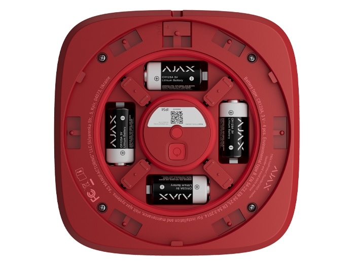 Sirena wireless adresabila cu indicator vizual pentru alarmare la incendiu, conformitate EN54-3, EN54-23 si EN54-25, volum sonor max. 100 dB la distanta de 1m, 32 tonuri selectabile, acoperire indicatii vizuale - diametru 8m la montare pe tavan (inaltime de 3m) / volum 2.4m x 8.2m x 8.2m la montare pe perete (inaltime de 2.4m), comunicatoare wireless incorporate, comunicare pana la 1700m in camp deschis, alimentare cu 4 baterii CR123A pre-instalate, IP54, culoare rosie, dimensiuni 145 x 145 x 51 mm, greutate 561g