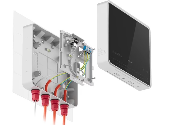 Accesoriu de cablare laterala pentru carcasele centralelor EN54 Fire Hub Jeweller (pentru cazurile in care cablarea prin perete nu e posibila), 16 locuri pentru instalarea glandelor (4 pe fiecare latura a accesoriului), accepta glande cu diametre de pana la 20 mm, culoare neagra, IP20, UL 94 V-0, dimensiuni 263 x 223 x 40 mm, greutate 335g
