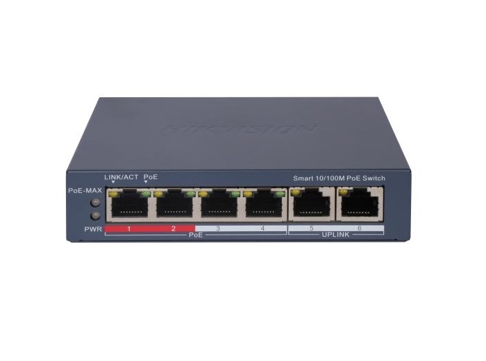 Switch PoE smart managed cu 4 porturi 10/100 Mbps PoE (long-range, pana la 300m distanta transmisie) si 2 porturi 10/100 Mbps RJ45, standard PoE IEEE 802.3af, IEEE 802.3at, PoE watchdog, protectie la descarcari electrice pana la 6KV, carcasa metalica, alimentare 54 VDC, 1.2 A