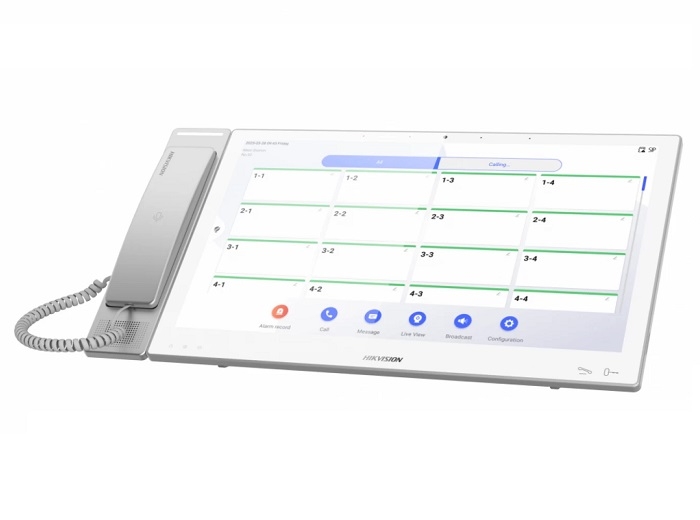 Terminal de sectie pentru camera asistentelor, ecran touch color cu diagonala de 15.6 inch si rezolutie 1920 x 1080, microfon omnidirectional incorporat, difuzor extern, volum ajustabil, protocol TCP/IP, SIP, RTSP, 2 intrari alarma, 2 interfete retea, accepta card TF de max. 128 G, sistem operare Android 7.1, dimensiuni 435 x 238 x 38.5 mm, alimentare 12 VDC / PoE standard (LAN1)