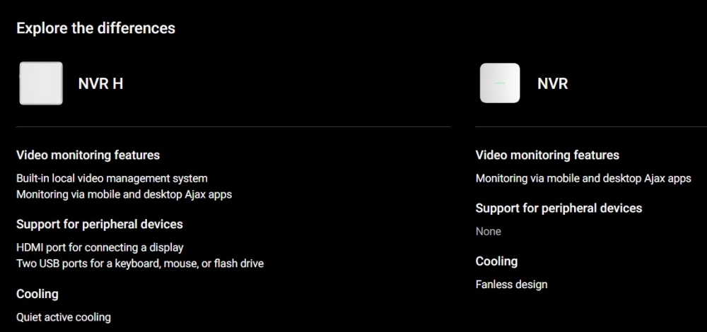 NVR Ajax cu 8 canale, culoare neagra, integrare camere third-party cu sistemul Ajax, port HDMI (Full HD) pentru conectare cu un monitor, 2 porturi UBS Type-A, port Ethernet RJ45, 4K rezolutie max. inregistrare, H.265/H.264, ONVIF, RTSP, banda max. 80 Mbps incoming, 40 Mbps outgoing, conectivitate SATA, marime 3.5", capacitate 16 TB / HDD, IP20, dimensiuni 212 x 212 x 64 mm, greutate 782g, alimentare 110-240 VDC, 50/60 Hz, 0.6 A, consum max. 24W