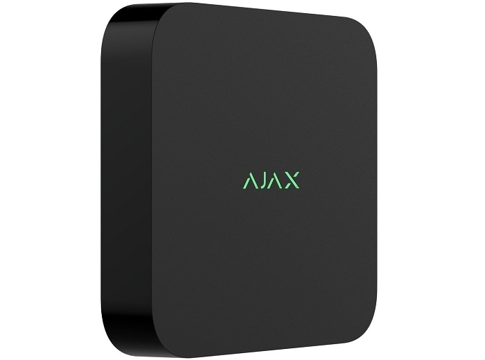 NVR Ajax cu 8 canale, culoare neagra, integrare camere third-party cu sistemul Ajax, 4K rezolutie max. inregistrare (25/30 fps), H.265/H.264, banda max. 100 Mbps, conectivitate SATA, marime 3.5", capacitate 16 TB / HDD, IP20, dimensiuni 193 x 193 x 47 mm, greutate 583g, alimentare 9 - 16 VDC, consum max. 24 W, compatibilitate cu toate centralele HUB Ajax