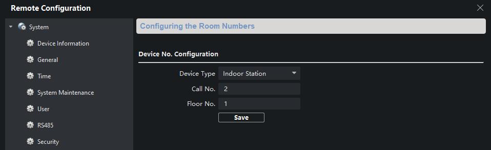 Din Maintenance and Management se acceseaza meniul Remote Configuration al postului de interior, de unde se va naviga in submeniul ID Configuration si se va completa campul Call No. cu o valoare dorita.