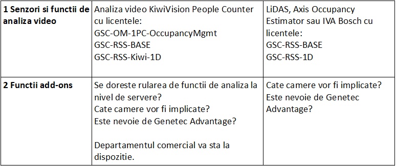 Iata si un tabel comparativ pus la dispozitie de Genetec in care sunt evidentiate cateva aspecte tehnice si performanta celor 4 metode de adunare a datelor si contorizare a persoanelor.