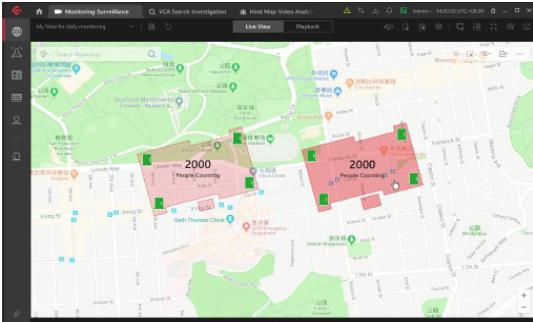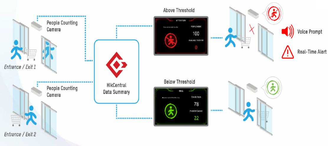 Solutia bazata pe HikCentral se preteaza pentru site-uri de dimensiuni ridicate cu intrari si iesiri multiple ca supermaketuri, depozite, centre de logistica, distribuite in mai multe locatii. Software-ul este capabil sa determine numarul total al persoanelor dintr-un lant de supermarket-uri si sa afiseze aceste infomatii in timp real pe monitoarele conectate la clientul Hik-Central.