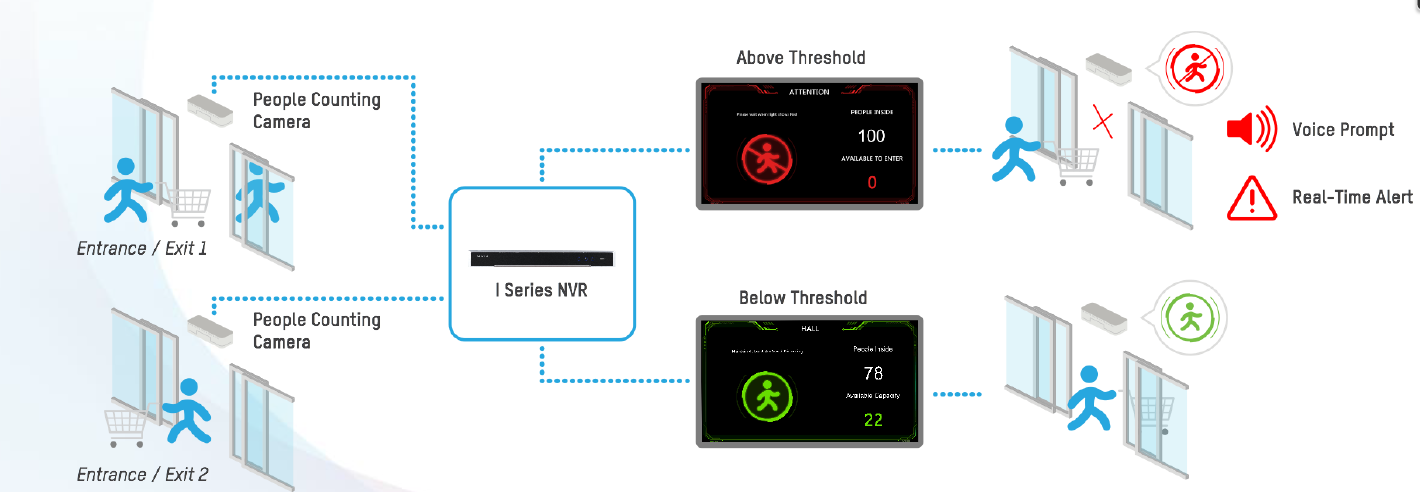 In aceste vremuri extrem de dificile pentru intreaga populatie si economie, in contextul distantarii sociale, Hikvision propune mai multe solutii de control al fluxului de persoane care acced intr-un supermarket, mall sau alte spatii interioare. Practic, aceasta solutie permite monitorizarea si controlul numarului permis de persoane intr-un spatiu inchis la un anumit moment de timp, masuri care reduc gradul de expunere la noul coronavirus. Solutiile propuse sunt exclusiv IP, bazate pe produse consacrate din portofoliul Hikvision cuprinzand camere de contorizare persoane, NVR-uri cu un firmware special creat pentru astfel de solutii, pachet software Hik-Central si, nu in ultimul rand, solutii de afisare a informatiilor intr-un format lizibil si usor de inteles.