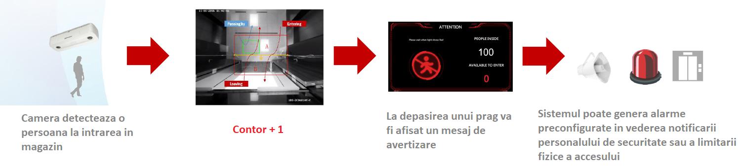 Intr-un articol anterior am prezentat o lista de solutii propuse de Hikvision in limitarea si controlul densitatii de persoane intr-un spatiu inchis (malluri, birouri etc.). Unele spatii comerciale limiteaza accesul vizitatorilor la o anumita valoare, insa aplicarea efectiva a acestei restrictii adesea lasa de dorit. Unii retaileri au gasit o solutie ingenioasa conform careia plasau la intrarea spatiului comerial un agent de paza sau un angajat cu un numar X de cartonase. Acestea erau distribuite vizitatorilor la accesul in spatiu. La iesirea din magazin, vizitatorul preda cartonasul agentului de paza. In situatiile in care acesta ramanea fara cartonase, orice alta persoana care dorea sa patrunda in magazin era invitata sa astepte pana la eliberarea unui loc.