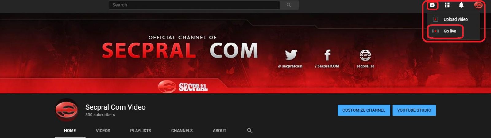 Pentru a incarca imagini live avem nevoie de un cont activ de YouTube. Camera IP trebuie instalata intr-o retea cu acces la internet. Din contul YouTube se va efectua un click pe icoana reprezentand o camera, apoi Go live.