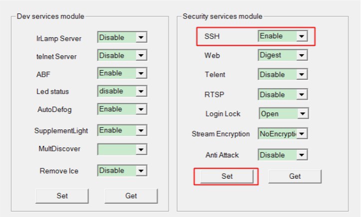 SSH-ul din motive de securitate este deazactivat in mod implicit. Acesta poate fi activat utilizand SDK-ul pus la dispozitie de Hikvision.