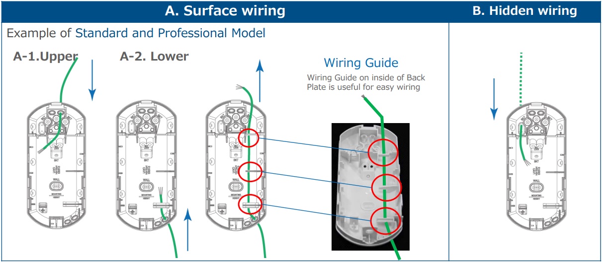 In plus, cablarea detectorului poate fi vizibila sau ascunsa.