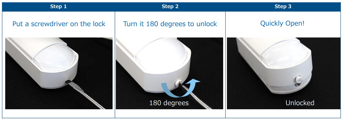 Instalarea mai e facilitata de faptul ca se poate inchide si deschide carcasa prin simpla intoarcere a unei surubelnite drepte la 180 grade.