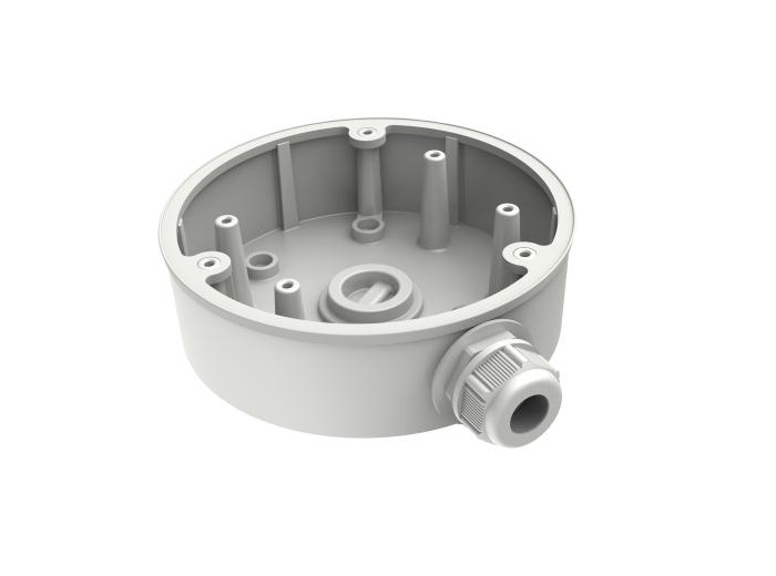 Doza de legaturi pentru montarea pe perete a camerelor dome Hikvision, din aliaj de aluminiu, intrare laterala si pe partea de jos, design rezistent la apa, dimensiuni Φ137 mm x 42 mm, greutate 280g, capacitate incarcare maxima 4.5 kg