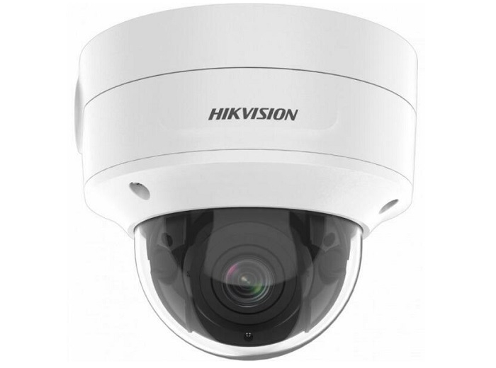 Camera IP dome 4MP AcuSense, IR 40m, lentila varifocala motorizata 2.8-12mm, WDR 120dB, 3D DNR, BLC, HLC, ROI, clasificare persoane si vehicule, captura faciala si alte functii de analiza video inteligenta, streaming triplu, slot card micro SD/SDHC/SDXC max. 512GB, alarma 1 in / 1 out, audio 1 in / 1 out, IP66, IK10, 12VDC/PoE