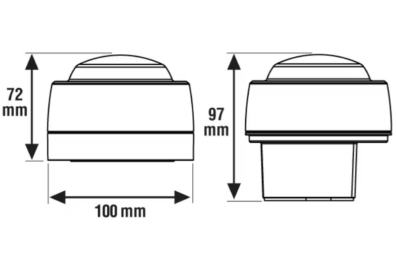 Dispozitiv de alarmare optic (VAD), acoperire optica omnidirectionala, montare pe perete (la inaltime de 2.4 m - latime incapere pana la 6.2 m) sau tavan (la inaltime de 3 / 6 m - diametru incapere pana la 9.4 / 8.2 m), tensiune de lucru 12-29 VDC, baza rosie, cap transparent, flash rosu, frecventa flash aprox. 0.5 Hz, tip protectie IP 21C, IP 65 cu CWR si accesorii, certificare EN 54-23, dimensiuni ø: 100 mm i: 72 mm, masa cca. 164g