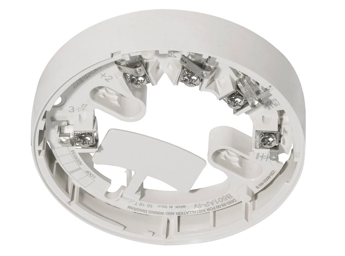 Soclu cu profil redus pentru detectoare Morley-IAS, culoare fildes, conexiuni cu suruburi pentru cabluri de pana la 2.5 mm, optiune tamper si eticheta de identificare a adresei