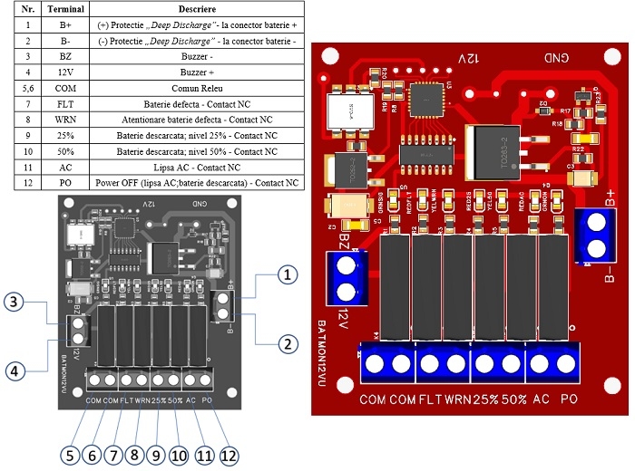 Sursa in comutatie 2.6 AH / 12 V in cutie metalica, cu modul de monitorizare baterie BATMON12VU pentru protejarea bateriei la descarcare excesiva. Atunci cand tensiunea ajunge la valoarea pragului de descarcare (10.9 VDC), modulul va decupla bateria. Pentru a functiona optim, tensiunea sursei se va regla la valoarea de tampon a acumulatorului cu Pb (13.8 VDC).