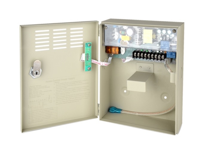 Sursa de alimentare in cutie pentru sisteme de control acces, intrare 100-240 VAC, 50-60Hz, iesire 12-15 VDC, curent total 3A, delay descuiere 0-45s, accepta baterie plumb-acid 12V7Ah, alimentare neintrerupta, eficienta >=80%, dimensiuni 208 x 170 x 70 mm, greutate 1.142kg