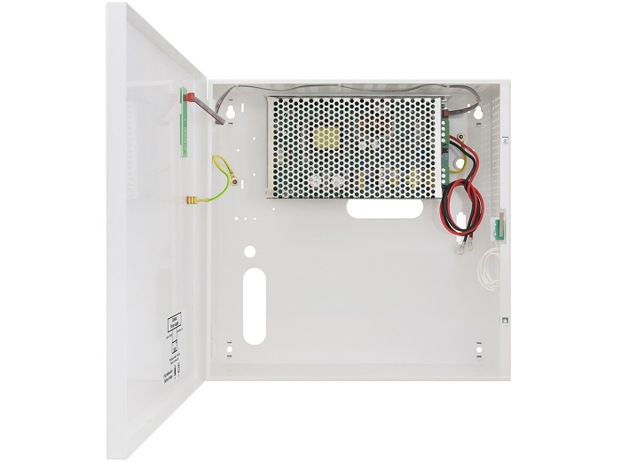 Sursa 13.8V/10A, suporta backup acumulator 17Ah, clasa protectie EN 62368-1: I (prima), grad protectie EN 60529: IP20, protectie impotriva scurt-circuitarii (SCP), supraincarcarii (OLP), supratensiunii (OVP), descarcarii electrice (UVP) si sabotajului (deschiderea nedorita a carcasei), indicator LED, control mentenanta si incarcare baterie, dimensiuni carcasa metalica 300 x 300 x 105 (+/-2mm)