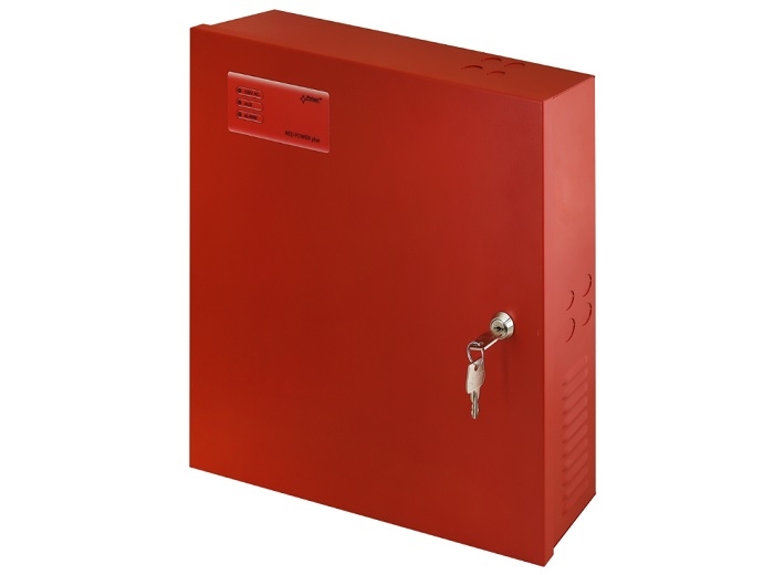 Sursa pentru sisteme de incendiu EN54C, 27.6V/10A, suporta backup acumulator 2 x 17Ah, in conformitate cu standardele EN 54-4 si EN 12101-10, 2 iesiri protejate independent AUX1 si AUX2, protectie impotriva scurt-circuitarii (SCP), supraincarcarii (OLP), supratensiunii (OVP), descarcarii electrice (UVP) si sabotajului - tamper, indicator LED, test baterie automat, proces de incarcare baterie in 2 etape, incarcare baterie accelerata, monitorizare continuitate circuit baterie, tensiune baterie, incarcare si mentenanta baterie, dimensiuni carcasa metalica rosie 390 x 406 x 88 mm