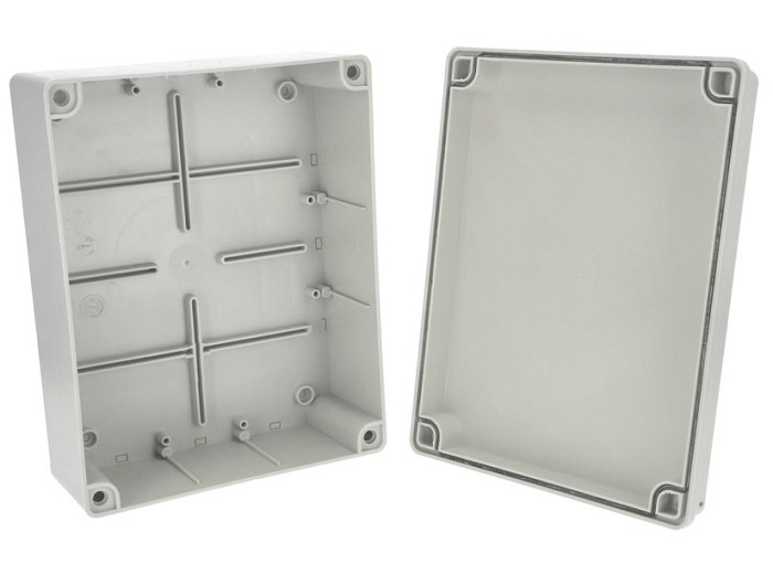 Cutie universala din ABS, clasa etanseitate IP65; dimensiuni 190 mm x 240 mm x 90 mm; culoare gri, conformitate RoHS