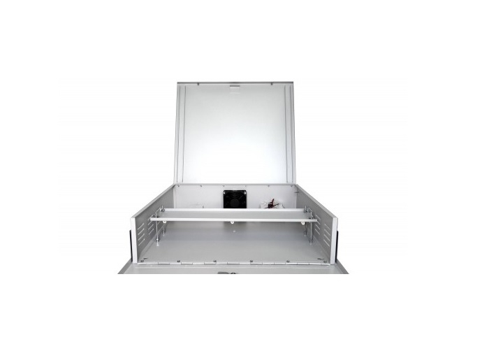 Cutie metalica de protectie DVR, cu montare orizontala sau verticala. Dimensiuni exterior: 450x430x110 mm. Dimensiunea maxima a DVR-ului: 380x320x90 mm. Realizata din tabla otel de 0.8 mm. Masa: cca. 4.1kg. Tabla din otel cu grosimea de 1mm. Capacul superior este fixat cu balama de corpul principal.