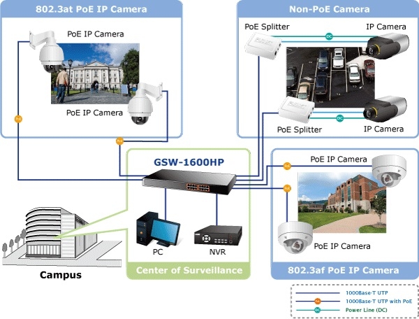 Switch cu 16 porturi 10/100/1000Mbps PoE+ switch ethernet, rackabil 1U 100Mbps, PoE IEEE802.3af (15.4W) si 802.3at (30W), capabilitate alimentare 14 dispozitive pe 802.3af și 7 dispozitive pe 802.3at, auto MDI/MDIX, throughput 23.8Mpps, carcasa metalica, alimentare 220VAC/3A