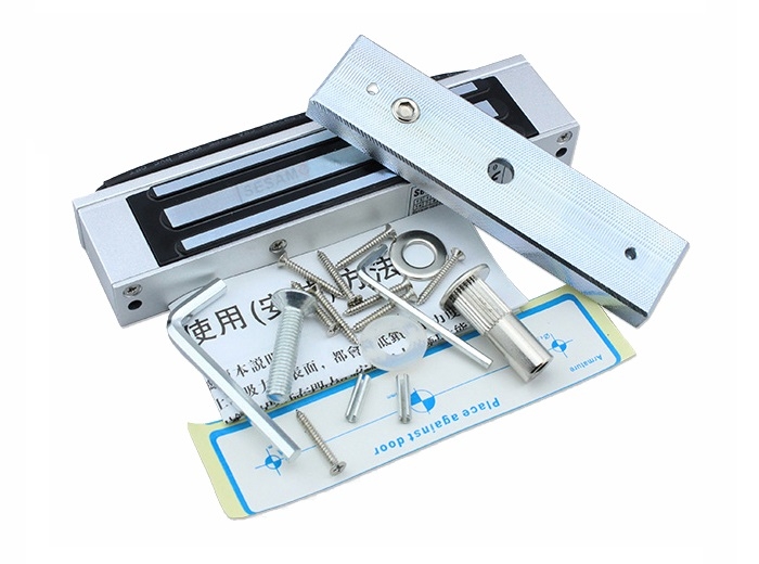 Electromagnet forta 180 kg, fail-safe (power to lock), pentru o usa din lemn, sticla, metal etc., montaj aplicat, consum curent redus, operare durabila si silentioasa, alimentare 12 VDC, curent absorbit 12V/380mA, dimensiuni 170 x 21 x 38 mm, dimensiuni armatura 130 x 30 x 9 mm, greutate aprox. 1 kg