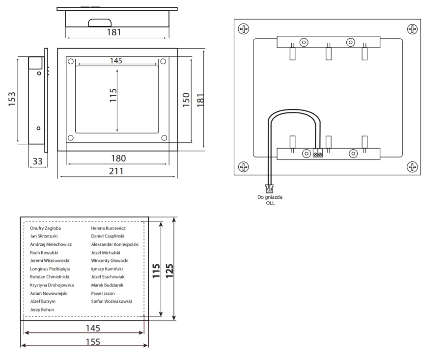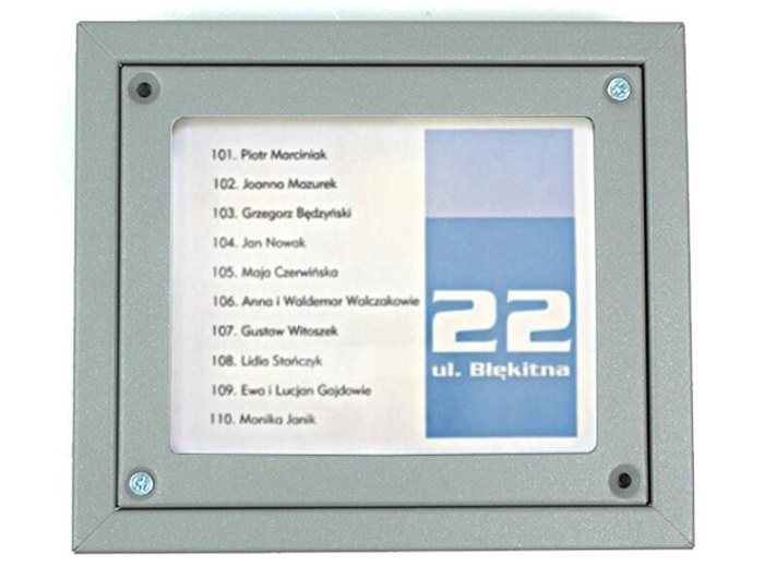 Tabel nominal locatari din otel galvanizat, lista iluminata cu LED-uri, montaj ingropat sau aplicat, IP44, alimentare 12-15VDC (de la centrala sau o sursa independenta)