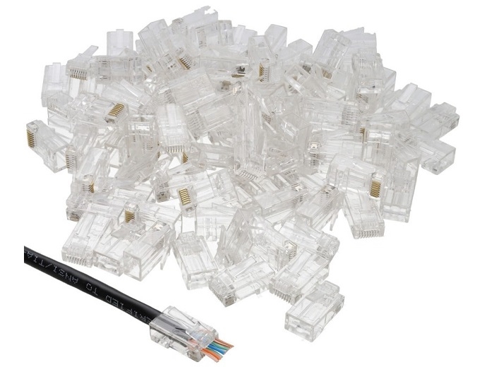 Set 100 bucati mufa EZ UTP Cat5e RJ45 pentru cablu neecranat 1.0mm, cu placare de aur 3μ, conexiuni 8p8c
