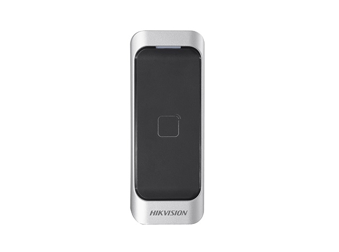 Cititor de proximitate pentru carduri Mifare, frecventa 13.56 MHz, distanta citire maxim 50 mm, protocol Wiegand (W26/W34) si RS-485, protocol OSDP, procesor 32-bit, indicator alimentare si status, buzzer incorporat, suporta alarma la sabotaj, functie upgrade online, IP65, tensiune alimentare 12 VDC, temperatura / umiditate operare -20°C ~ +65°C / 10-90% RH, dimensiuni 115 x 44 x 22 mm
