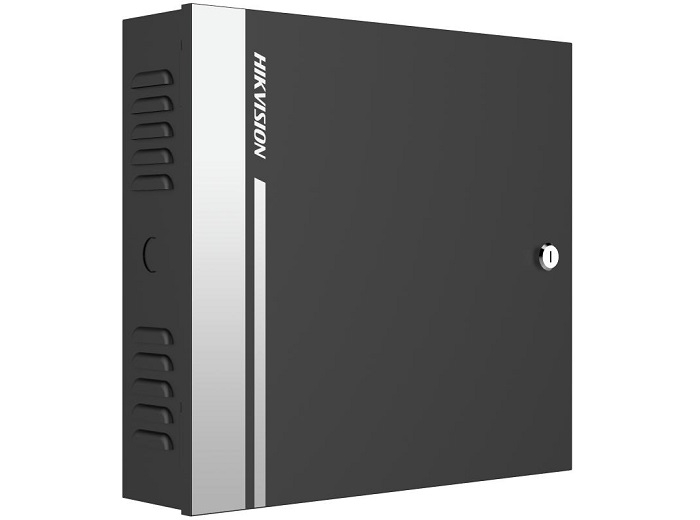 Centrala control acces pentru 4 usi, capacitate 10,000 carduri si 50,000 evenimente, functionalitate anti-passback, 1 interfata retea, 4 interfete control yala, 4 interfete de buton exit, 4 intrari contact usa, 3 intrari alarma, 4 iesiri alarma, 1 tamper, 1 x RS-485, 4 x Wiegand 26/34, alimentare 100-240 VAC, se poate conecta un acumulator de backup, dimensiuni 370 x 345 x 90 mm