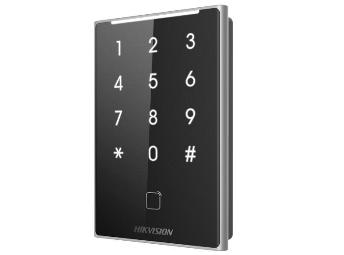 Cititor de proximitate pentru carduri M1 (Mifare), DESfire si Felica, cu tastatura, 1 interata Wiegand (W26, W34), 1 interfata RS-485, 1 tamper, IP65, montare pe perete, alimentare 12VDC, dimensiuni 125 x 84.5 x 18 mm