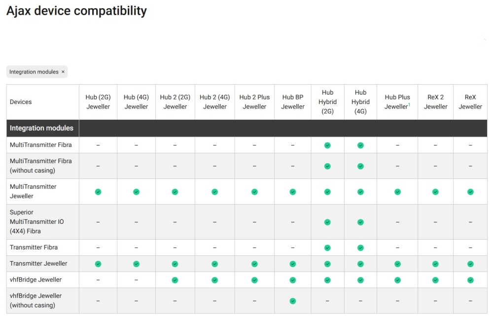 Modul transmitator pentru conectarea detectorilor de miscare de exterior, barierelor IR si alte dispozitive third-party cu iesiri cablate cu sistemul de securitate Ajax, 1 intrare alarma, tipuri de alarma ajustabile (intruziune, incendiu, ajutor medical, panica, gaz), distanta semnal radio max. 1600 m, dimensiuni 100 x 39 x 22 mm, greutate 74g