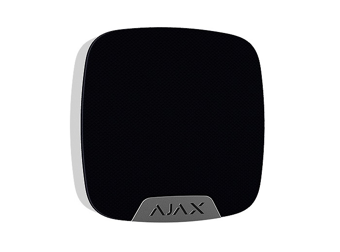 Sirena wireless de interior neagra, notificari acustice (81-105 dB la distanta de 1 m), durata alarma reglabila 3-180 secunde, indicator stare armat/dezarmat, distanta semnal radio max. 2000 m, alimentare cu 2 baterii CR123A incluse, 3 V, IP50, dimensiuni 75 x 76 x 27 mm, greutate 97g
