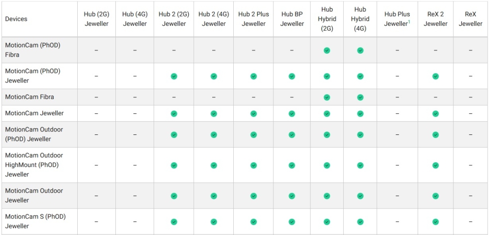 | Gama | Jeweller (wireless) |