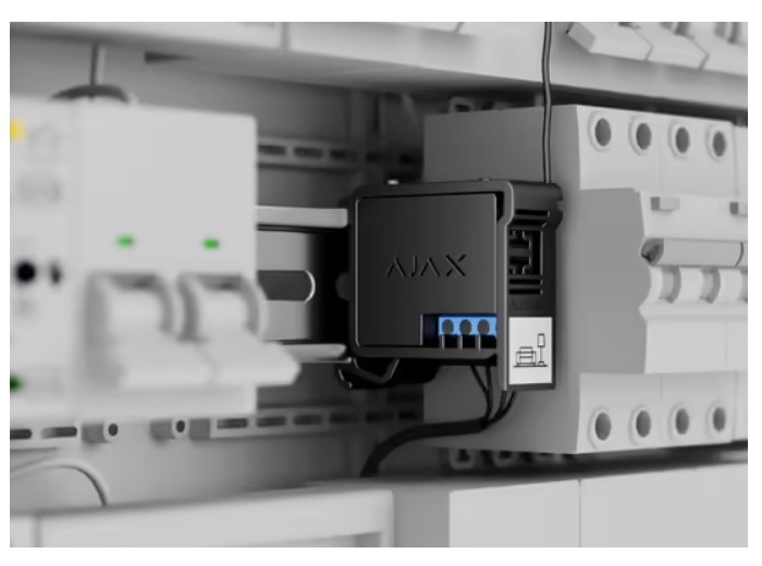 Suport pentru fixarea modulelor RELAY sau WALLSWITCH AJAX pe o sina DIN de 35mm, poate fi instalat intr-o cutie de jonctiune, intr-un cabinet de server sau intr-un panou electric, dimensiuni 52 x 41 x 18 mm, greutate 9g, material policarbonat, culoare neagra