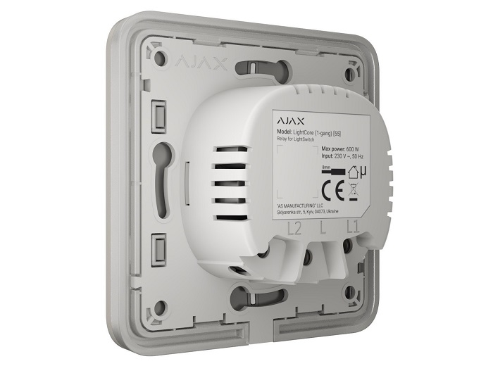 Releu LightCore 1-gang, dimensiuni 76.3 x 72.3 x 29.2 mm, greutate 45.95g. Impreuna cu butonul SoloButton 1-gang/2-way formeaza intrerupatorul LightSwitch 1-gang care activeaza un dispozitiv prin apasare sau apropierea mainii la maxim 15 mm. Compatibil cu Hub Plus, Hub 2 (2G/4G), Hub 2 Plus, Hub Hybrid (2G/4G), Rex si Rex 2.