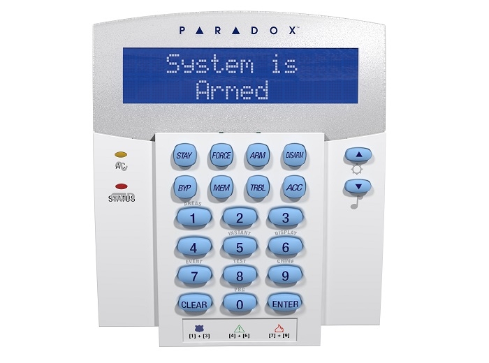 Tastatura cablata LCD cu 32-caractere, emitator/receptor incorporat (433MHz), Stay D, compatibilitate: SP, LCD albastru cu etichete programabile, afisarea in timp real a alarmei pe zona, 1 intrare de zona de la tastatura, 1 iesire PGM (urmeaza starea armarii), 8 butoane cu actiune rapida, 3 alarme de panica care pot fi activate de la tastatura, meniu in lb. romana