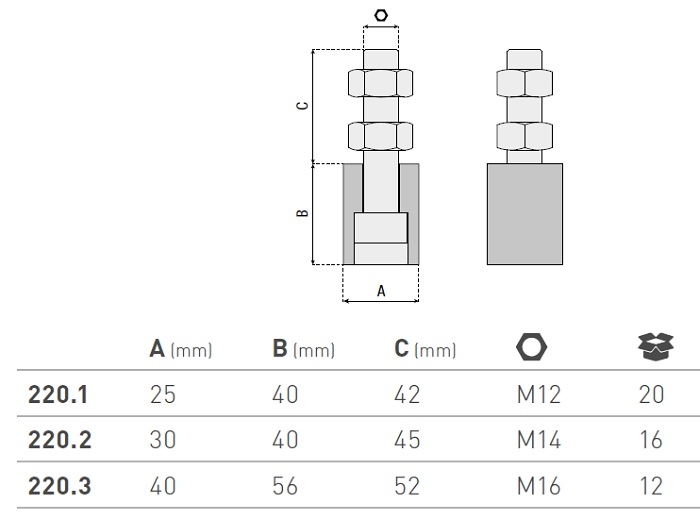 Roti nylon albe cu pin, M14, dimensiuni 30 (A) x 40 (B) x 45 (C) mm