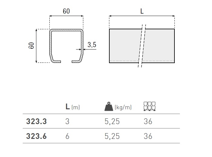 SINA GALVANIZATA 60X60X3,5 X 6 MT