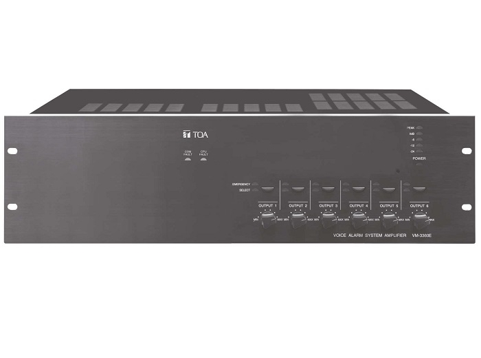 Amplificator-extensie pentru amplificatoare master din seria VM-3000 (conectare via VM Link), max. 9 extensii, EN 54-16, iesire total 360W, raspuns in frecventa 50 Hz - 20 kHz, 6 iesiri pentru difuzoare, 8 intrari si 8 iesiri generale, 6 intrari pentru urgente si 3 iesiri pentru informatii status, alimentare 230 VAC, 50/60 Hz, dimensiuni 482 x 132.6 x 407 mm, greutate 19 kg