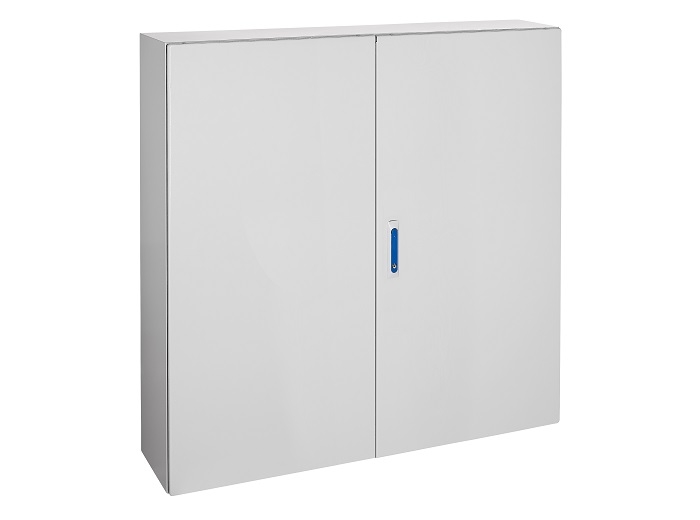 Cutie din tabla metalica + contrapanou, 2 usi, maner rotativ si inchidere in 3 puncte (2 tije), cu 2 flanse fiecare L=500 A=190 mm, tip G, IP54, IK10, dimensiuni 1200 (inaltime) x 1200 (latime) x 300 (adancime) mm, culoare gri deschis, standard produs EN 62208