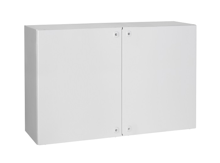 Cutie din tabla metalica + contrapanou, 2 usi, maner rotativ si 4 incuietori standard dublu bit, cu 2 flanse fiecare L=500 A=190 mm, tip G, IP54, IK10, dimensiuni 800 (inaltime) x 1200 (latime) x 400 (adancime) mm, culoare gri deschis, standard produs EN 62208