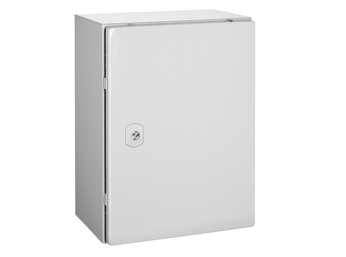 Cutie din tabla metalica + contrapanou, 1 usa, cu 1 incuietoare standard dublu bit, cu o flansa L=200 A=115 mm, tip A, IP66, IK10, dimensiuni 400 (inaltime) x 300 (latime) x 210 (adancime) mm, culoare gri deschis, standard produs EN 62208