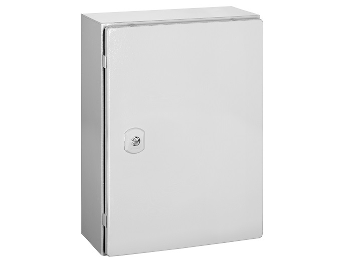 Cutie din tabla metalica + contrapanou, 1 usa, cu 1 incuietoare standard dublu bit, IP66, IK10, dimensiuni 400 (inaltime) x 300 (latime) x 150 (adancime) mm, culoare gri deschis, standard produs EN 62208