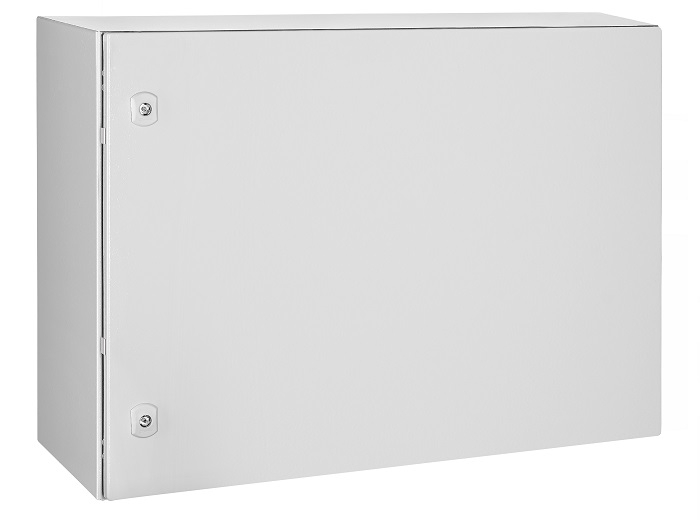 Cutie din tabla metalica + contrapanou, 1 usa, cu 2 incuietori standard dublu bit, cu 2 flanse fiecare L=300 A=190 mm, tip C, IP66, IK10, dimensiuni 600 (inaltime) x 800 (latime) x 300 (adancime) mm, culoare gri deschis, standard produs EN 62208