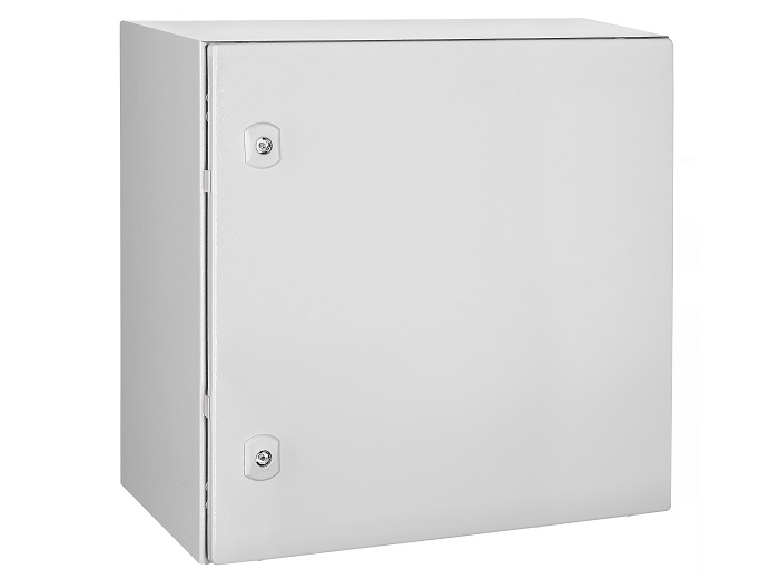 Cutie din tabla metalica + contrapanou, 1 usa, cu 2 incuietori standard dublu bit, cu o flansa L=400 A=190 mm, tip E, IP66, IK10, dimensiuni 500 (inaltime) x 500 (latime) x 300 (adancime) mm, culoare gri deschis, standard produs EN 62208