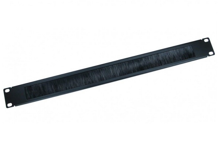 Ghidaj cabluri cu perii (organizator cabluri pentru rack 19"), 1U, culoare neagra, greutate 0.35 kg
