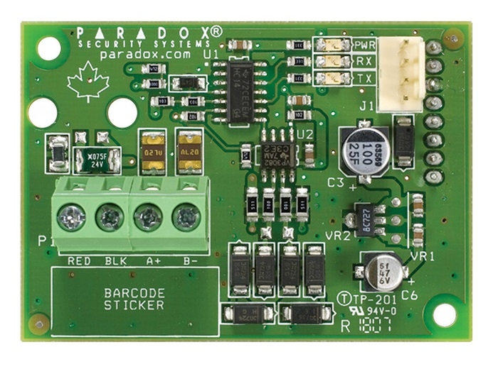 Plug-in RS485 converter, permitand conectarea modului PCS 250 pana la 300m de la centrala, se montaza direct pe centrala, e compatibil doar cand raportarea catre statia centrala se face via GSM